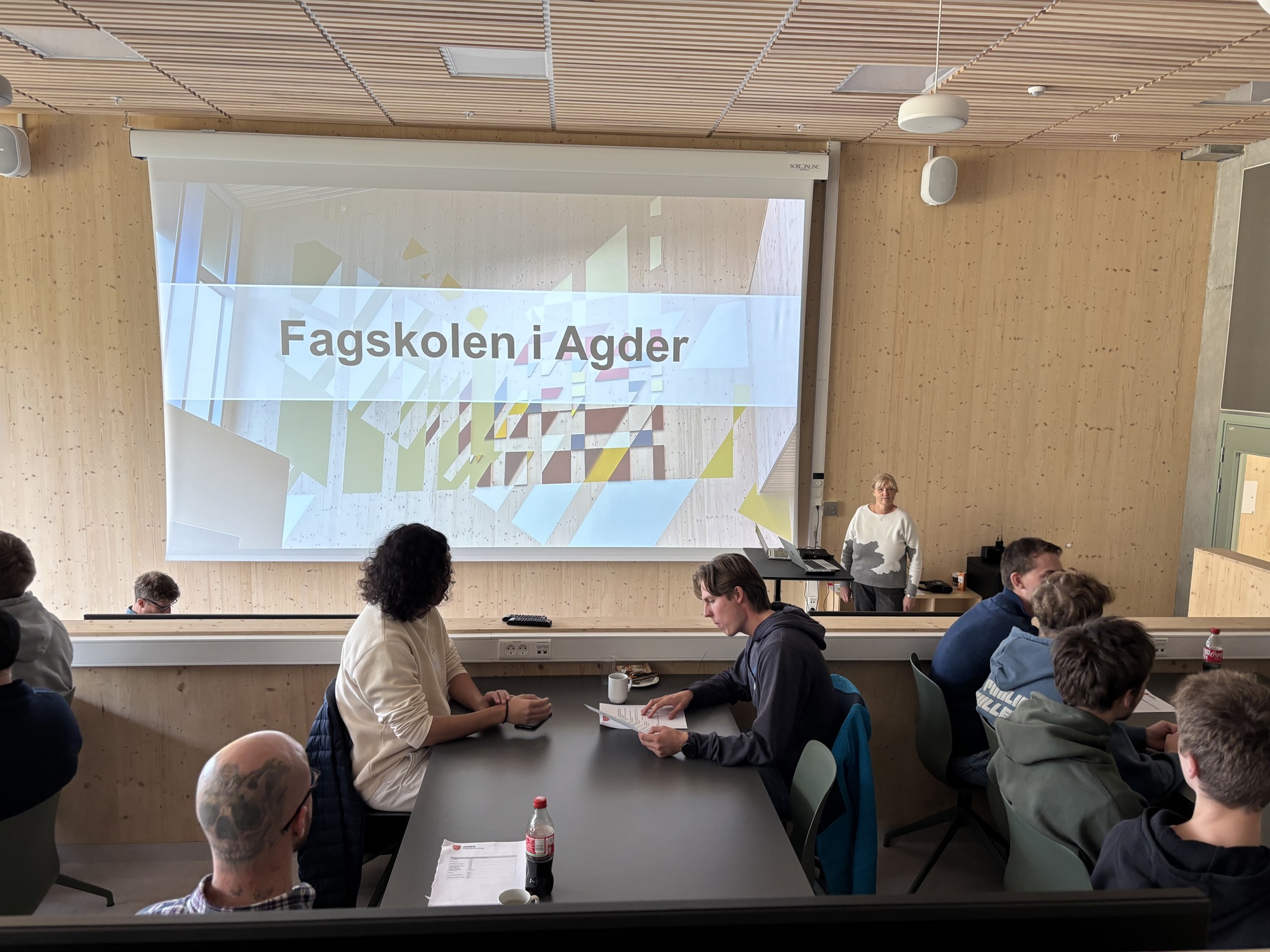 Anne Siri Fagervoll fra Fagskolen i Agder presenterte skolens tekniske etter- og videreutdanningstilbud, før lærlingene ble tatt med på omvisning i de tekniske laboratoriene.