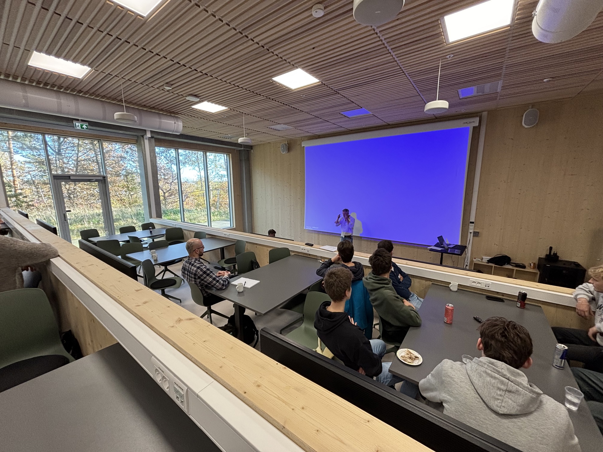 Dagen ble avsluttet med pizza og sosialt samvær i kantina på Universitetet i Agder, Campus Grimstad.