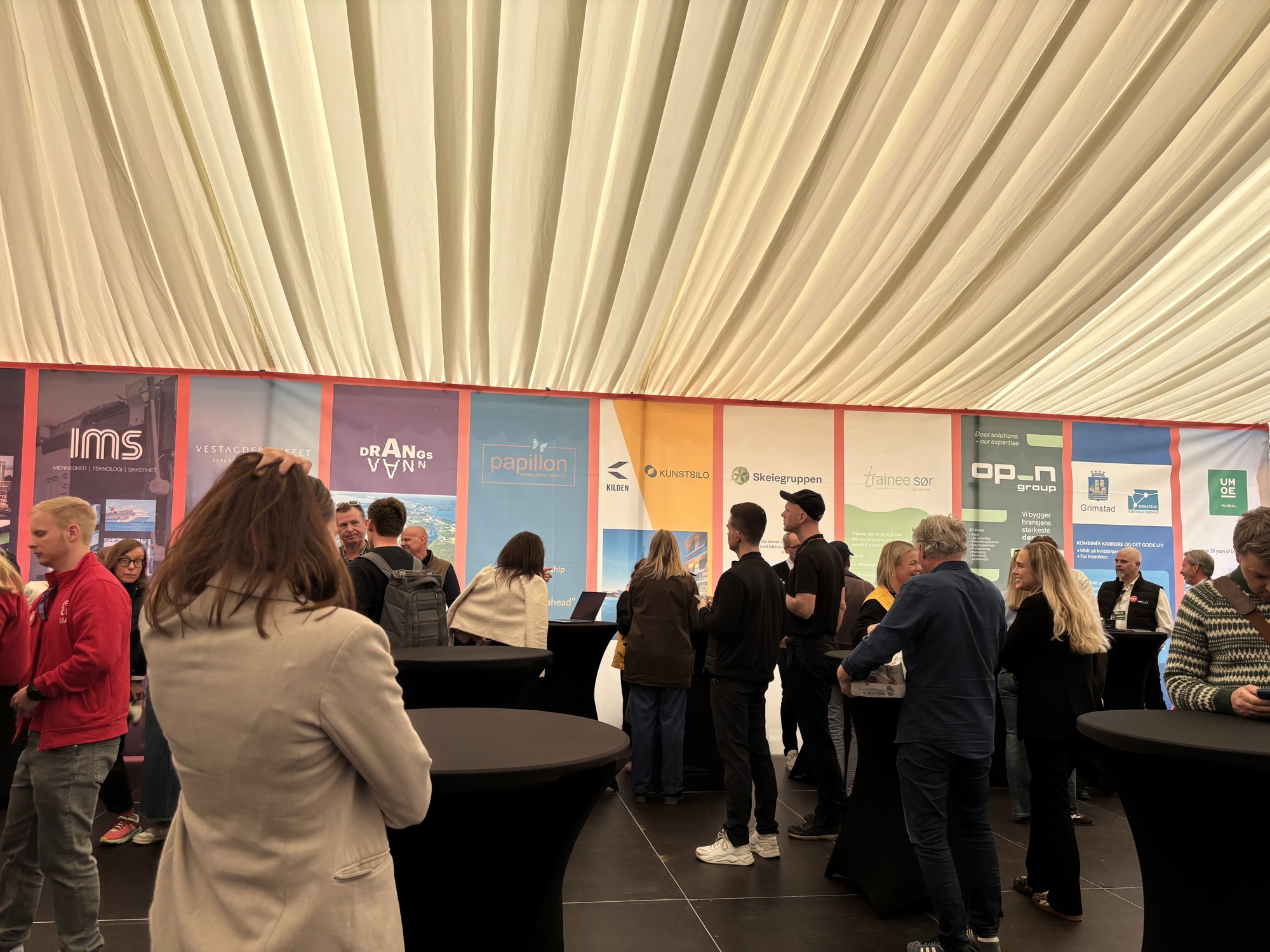 Et stort telt midt på Youngstorget dannet rammen rundt arrangementet, med kafébord ute, uformelle møter og høy aktivitet gjennom hele dagen. Besøkende fikk møte bedrifter fra industri, energi, teknologi, kultur, finans og offentlig sektor – og høre historier om karriere, studier og livet på Sørlandet.