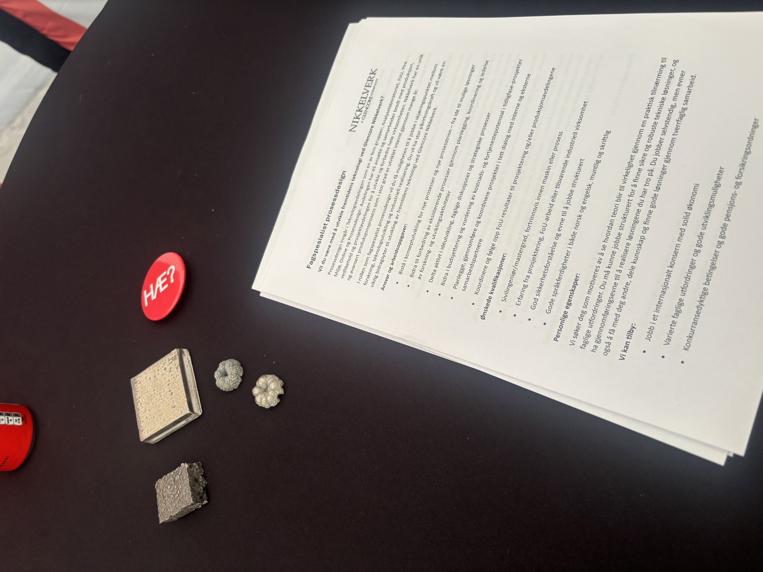 – Dette arrangementet er noe helt annet enn tradisjonelle karrieredager. Her møter vi både studenter og erfarne fagfolk. Man vet aldri hvem som kan være interessert i å flytte sørover, sa Ingunn. Responsen var over forventning. – Vi har hatt besøk av folk som ikke kjente Nikkelverket fra før, men som har blitt nysgjerrige på alt fra energibruken vår og fjernvarmesystemet, til kjemien i produksjonen. Vi har også møtt sørlendinger som ønsker å vende hjem, fortalte Emil.