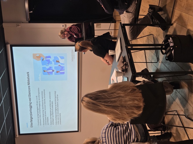 Agnete Rieber-Mohn, HR-direktør ved Nikkelverket, åpnet samlingen med et innlegg om hvordan HR-data kan styrke etterfølgerplanleggingen. Nikkelverket forventer stor naturlig avgang om noen år og trenger etterfølgere til mange av dagens ansatte som er over 50 år. Det tar tid å rekruttere og utvikle deres etterfølgere. For at bedriften skal klare dette, må de planlegge godt og vite hvilken kompetanse de trenger og legge til rette for kompetanseoverføring.