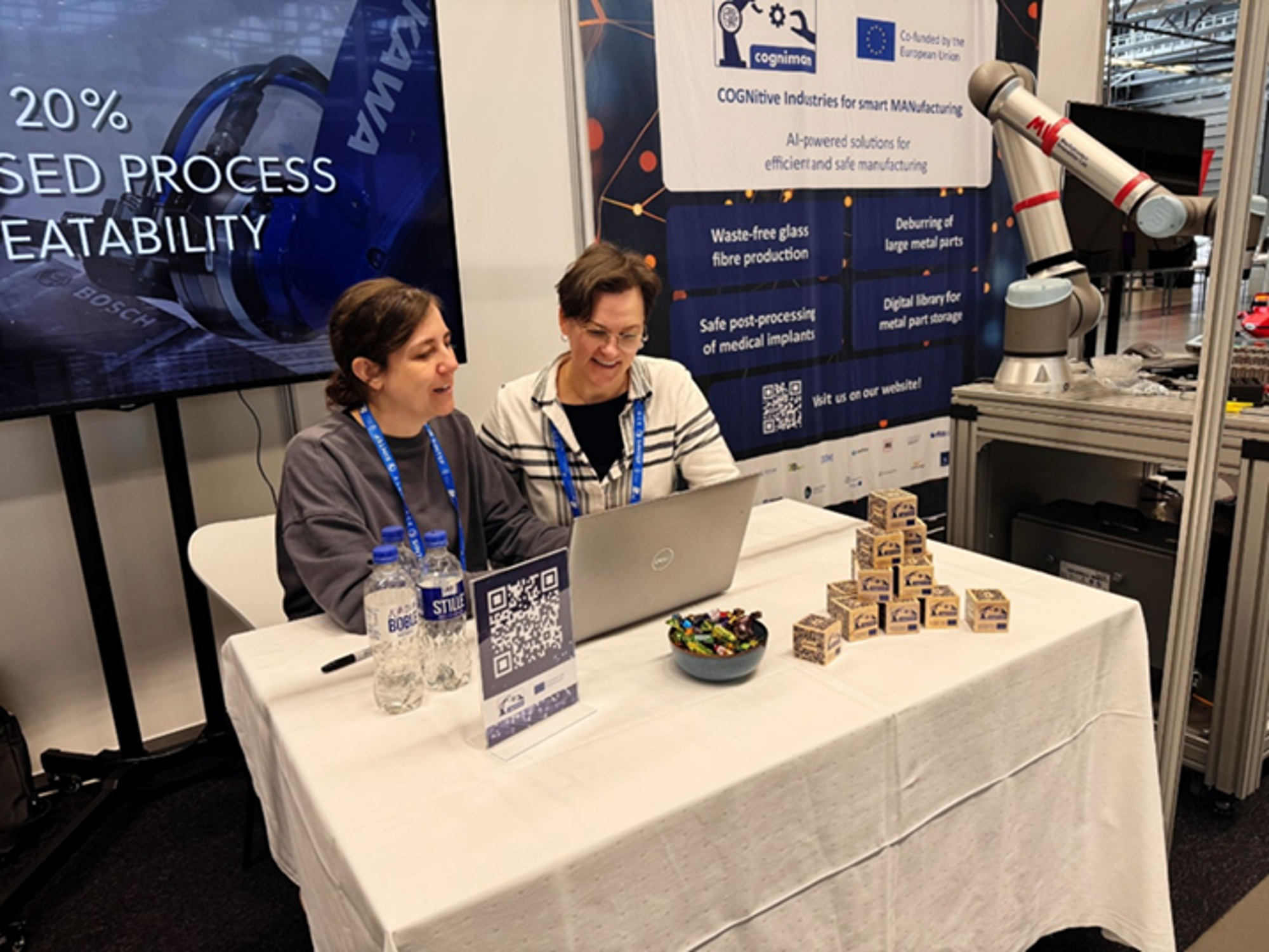 På standen fikk besøkende oppleve hvordan teknologien fungerer i praksis. COGNIMAN utvikler AI-drevne robotsystemer som gjør produksjon mer fleksibel, trygg og robust.